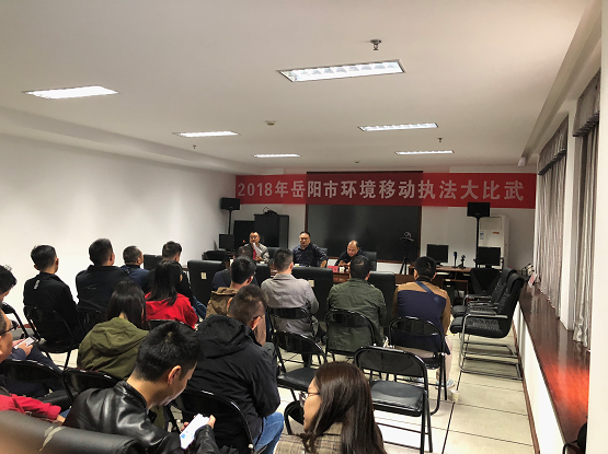为推进环境执法队伍建设,进一步提高环境执法水平,根据生态环境部、湖南省环境保护厅的要求,我局于2018年10月15日组织全市12个县市区环保局开展了2018年岳阳市环境监察移动执法大比武。在大比武启动会上党组成员周兴通报了2018年全市环境监察执法取得的成绩与不足,希望各县市区通过此次大比武,强化移动执法设备的使用,提高现场执法的能力与技巧。