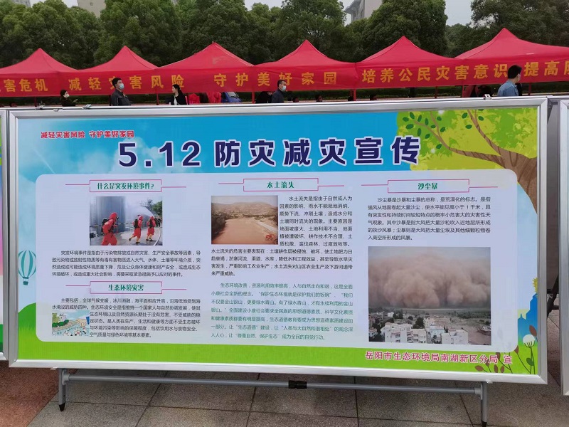 “5·12”全国防灾减灾日,根据市减灾委统一部署,南湖新区组织各单位在南湖广场参加活动。借这次契机 ,南湖生态环境分局积极参加,开展“减轻灾害风险,守护美好家园。”主题宣传,并且制作1.2mx2.4m展板2块 ,发放宣传资料1000份,与此同时进行环境保护知识相关宣传。(彭芊)