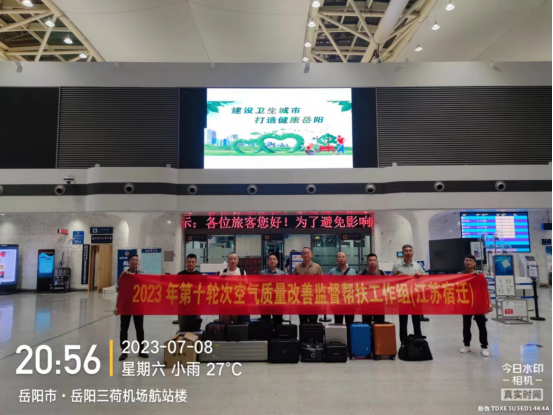 出发!7月8日,22:15一架装载着2023第十轮次空气质量改善监督帮扶工作组成员的客机,在岳阳三荷机场腾空而起。来自岳阳市的7名同志连夜赶赴江苏宿迁,帮扶当地空气质量改善工作。