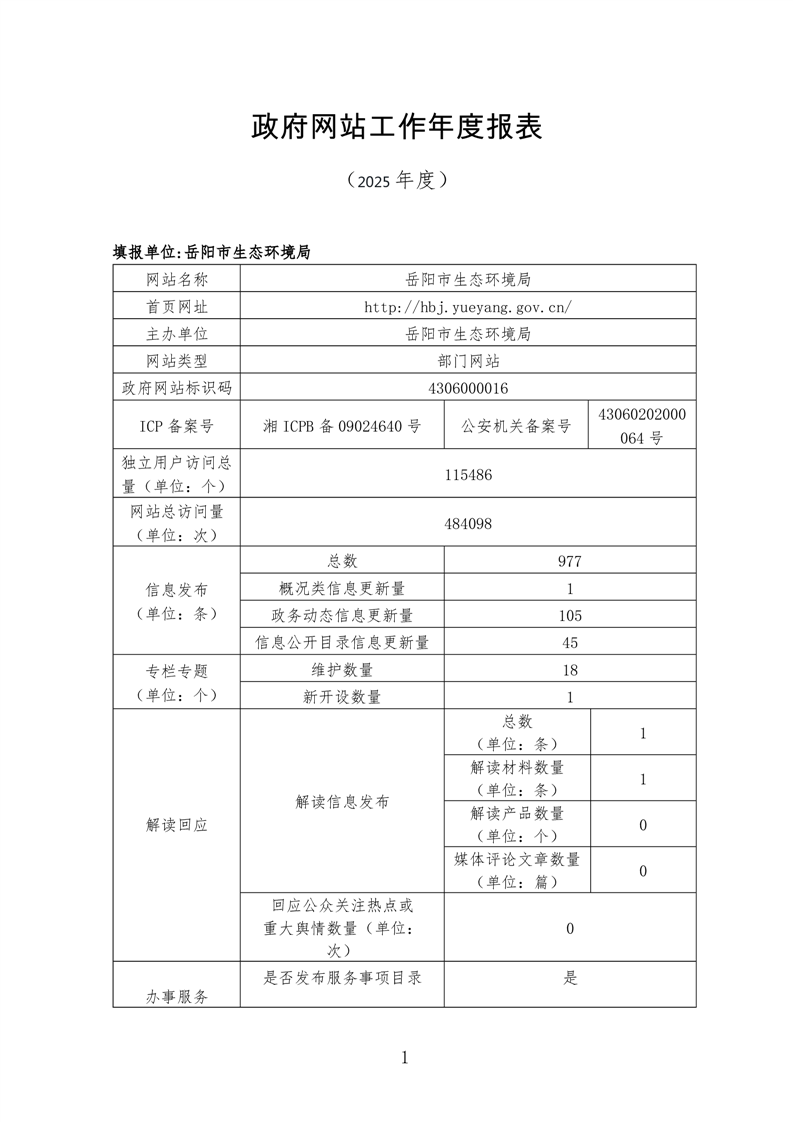 岳阳市生态环境局网站工作2025年度报表