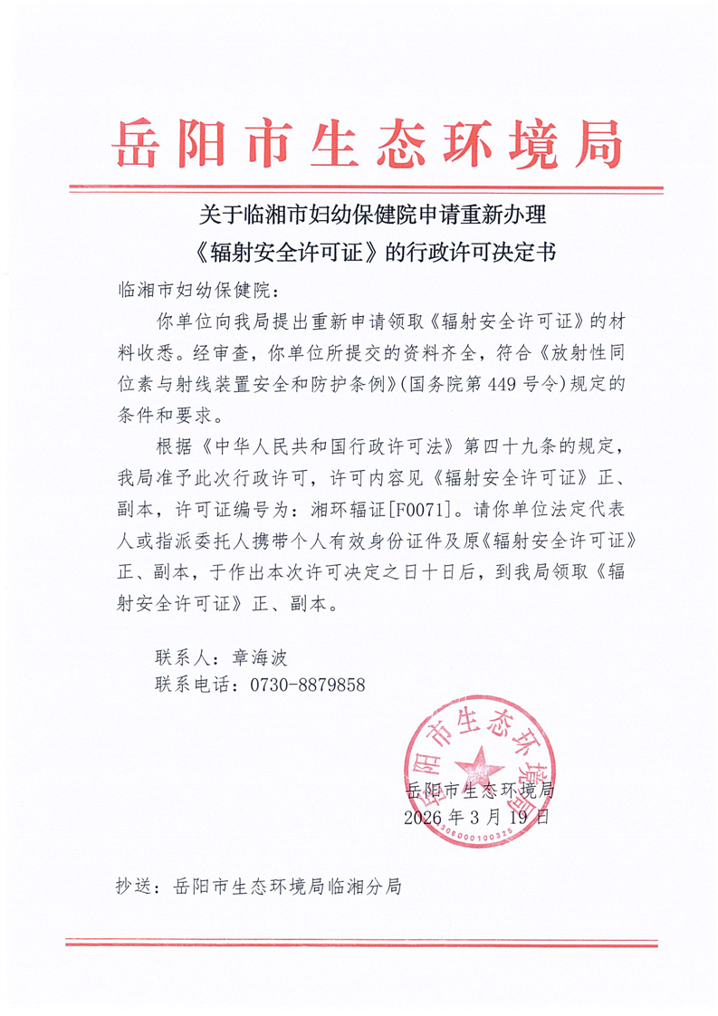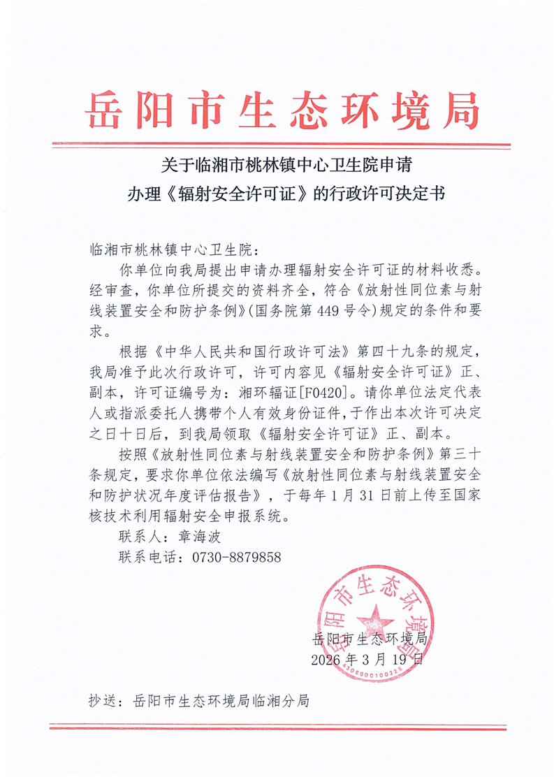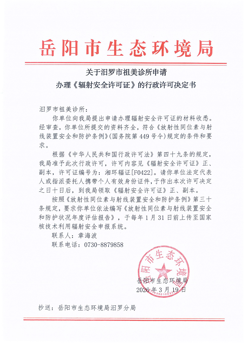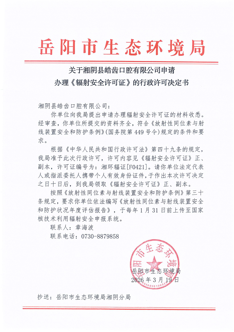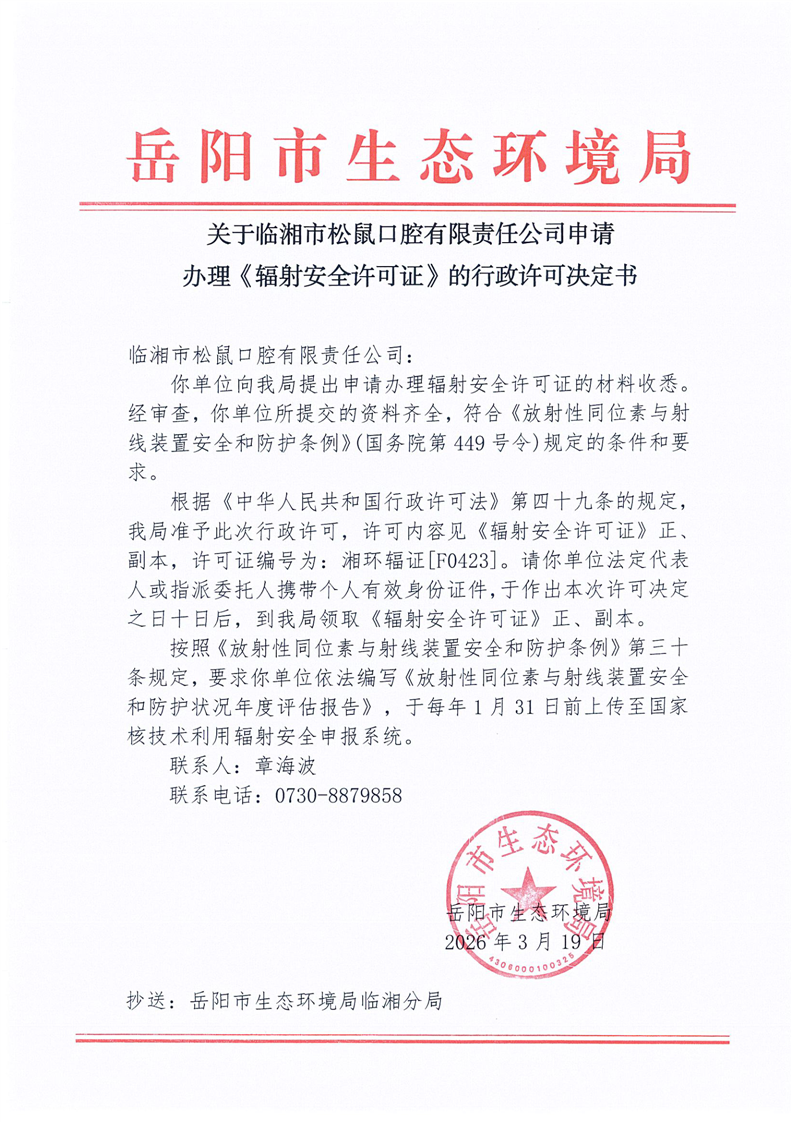 关于3月19日项目《辐射安全许可证》的行政许可决定
