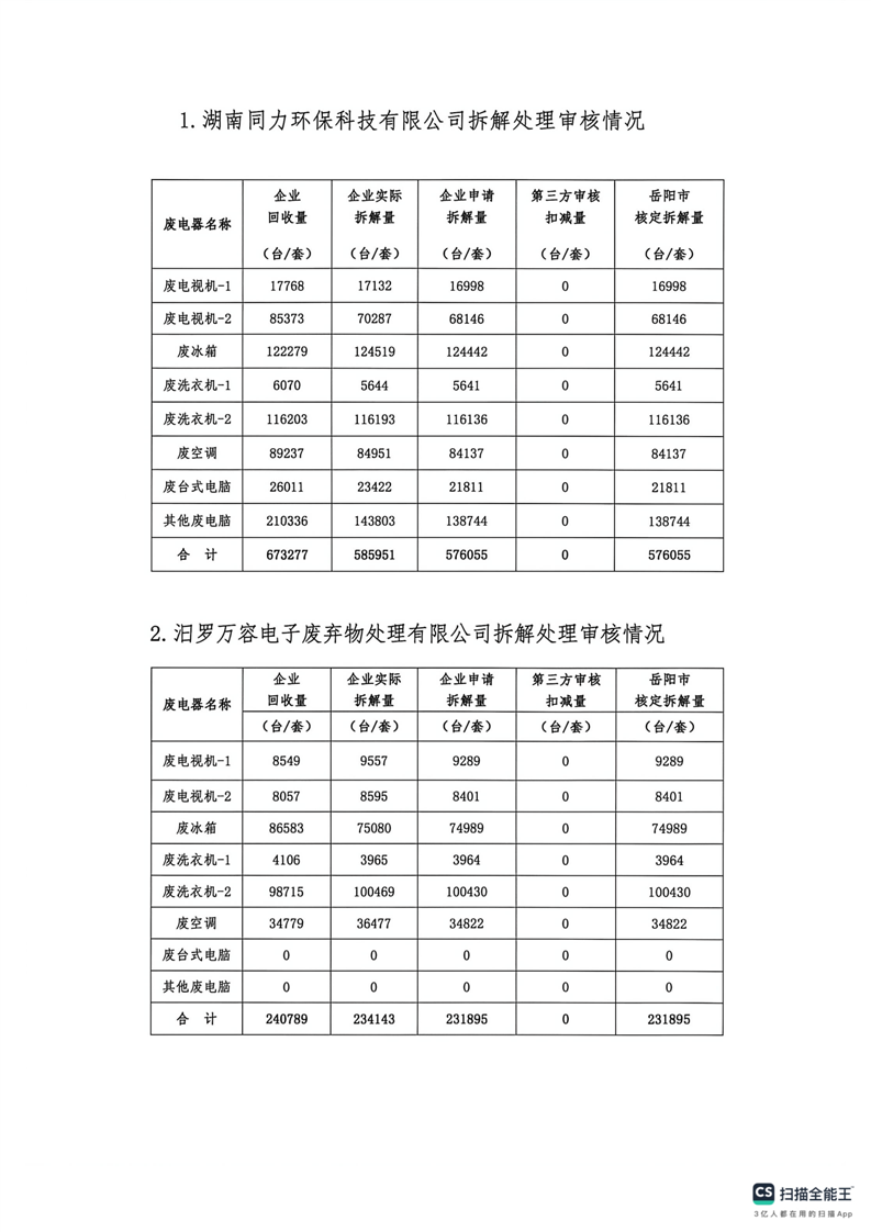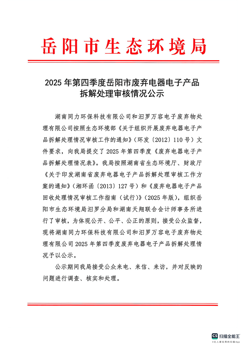 2025年第四季度岳阳市废弃电器电子产品拆解处理审核情况公示