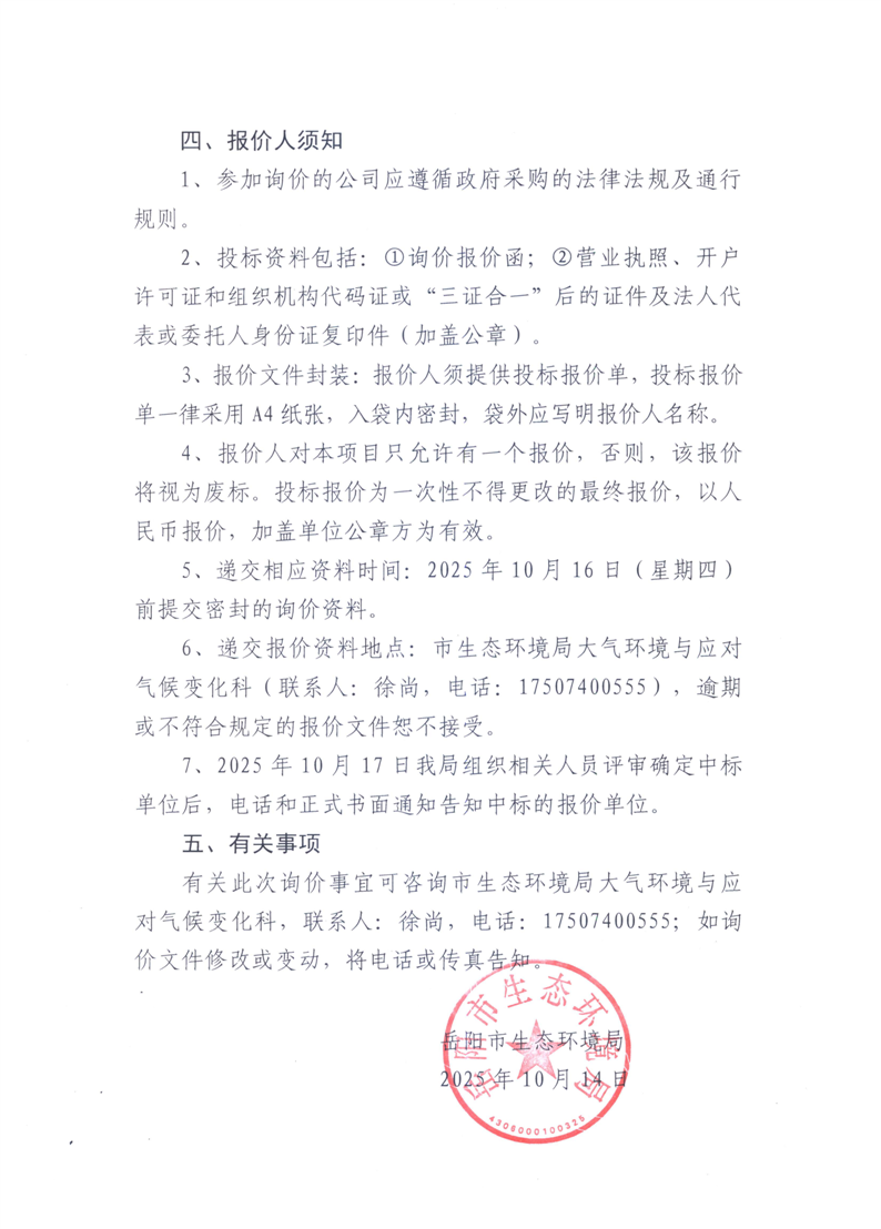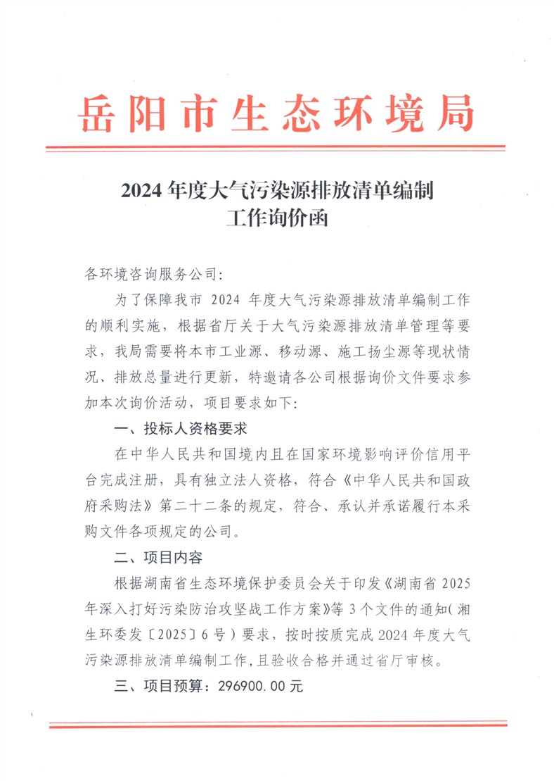 2024年度大气污染源排放清单编制工作询价函