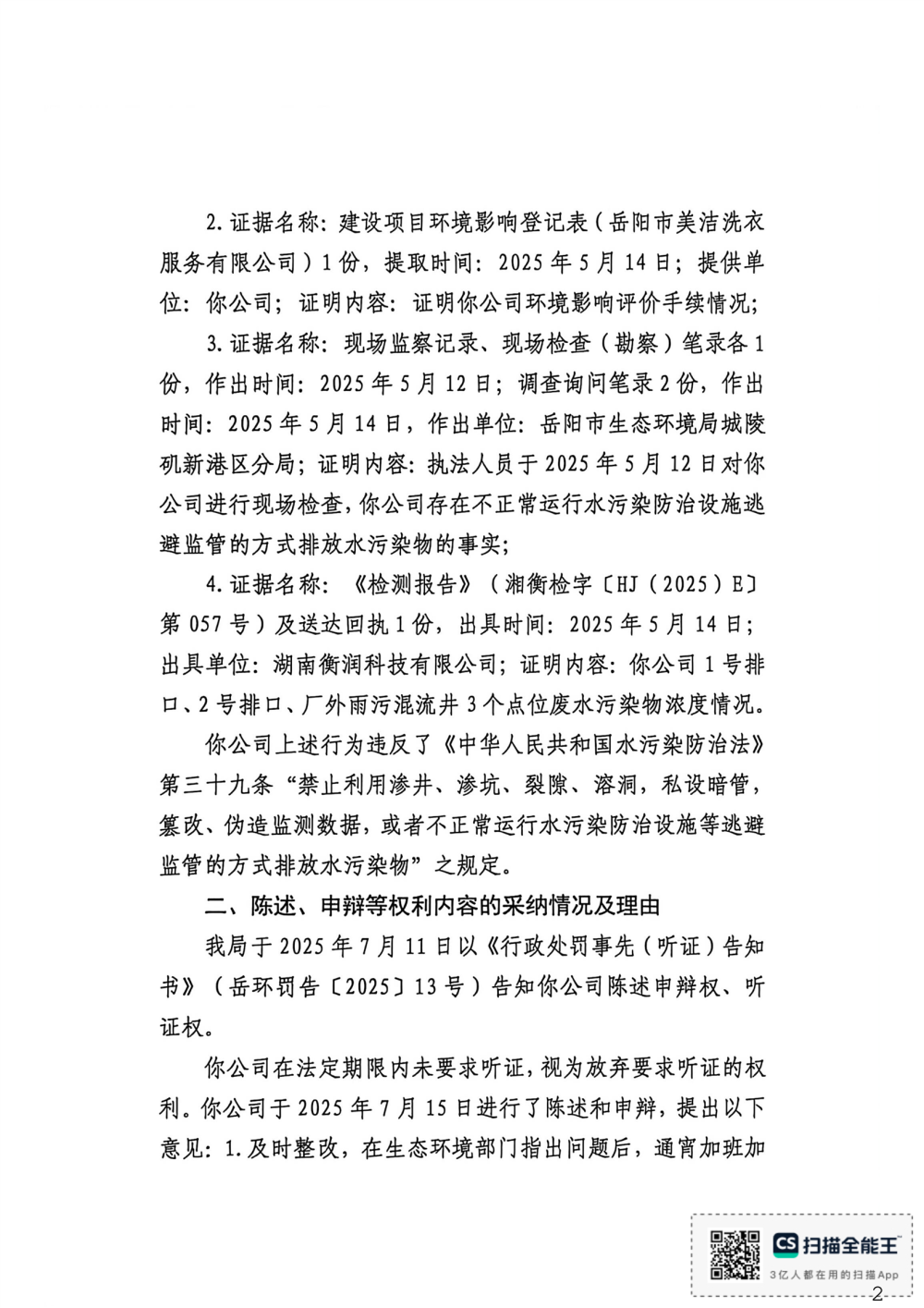 岳环不罚决字【2025】7号