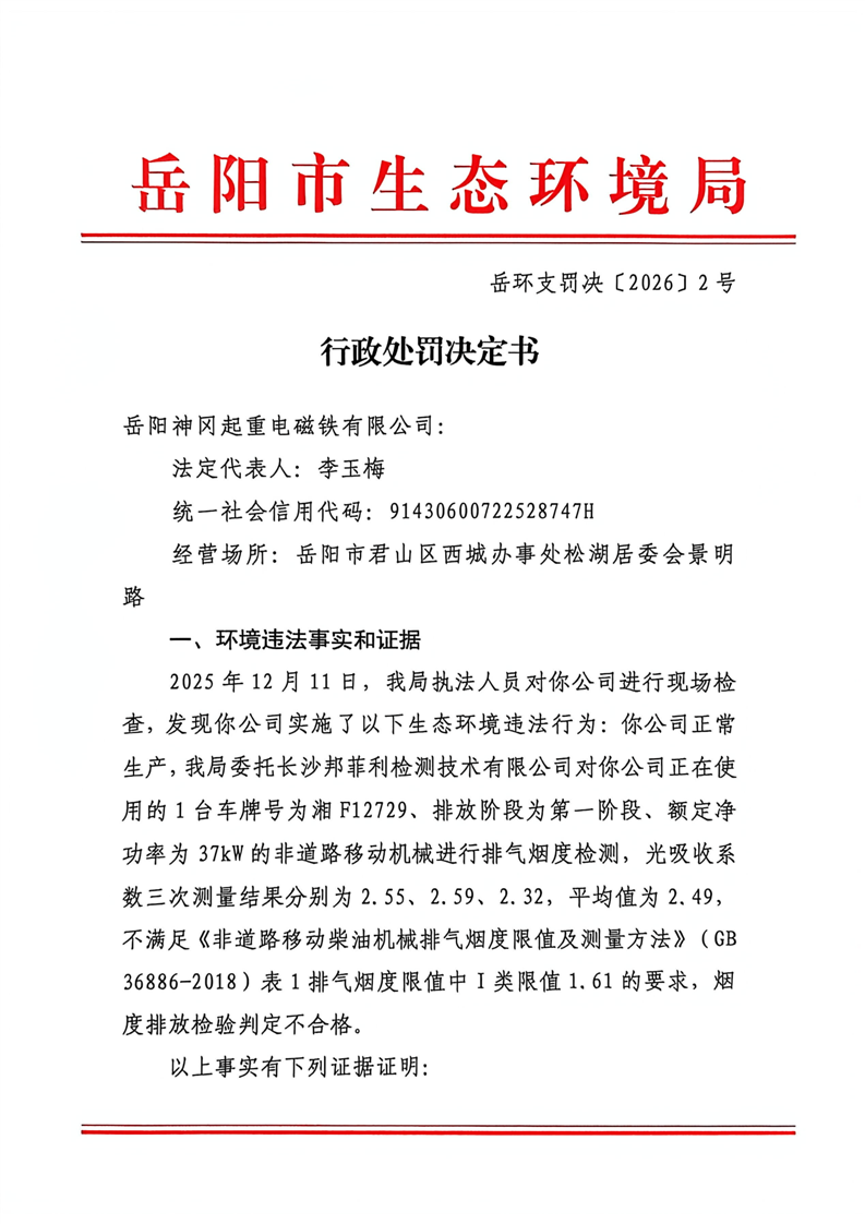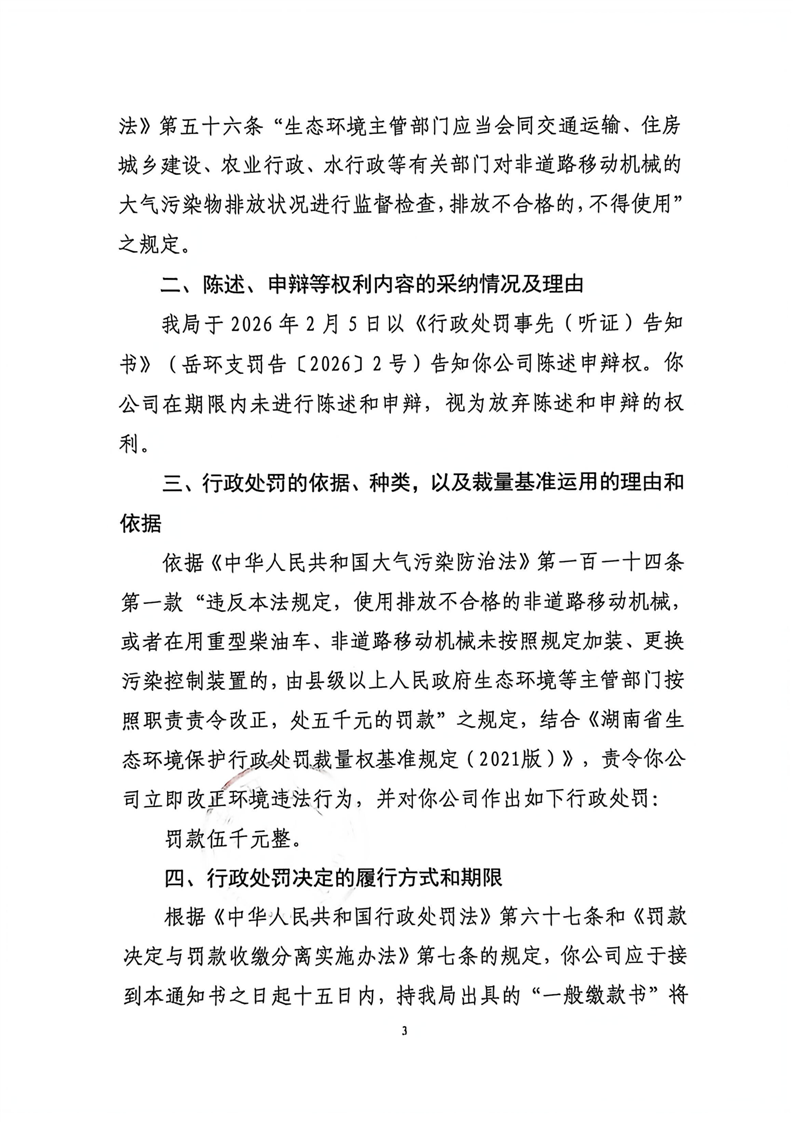 岳环支罚决﹝2026﹞2号