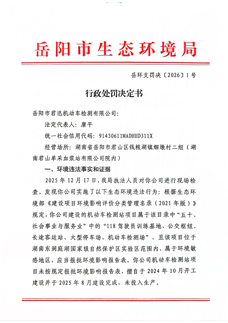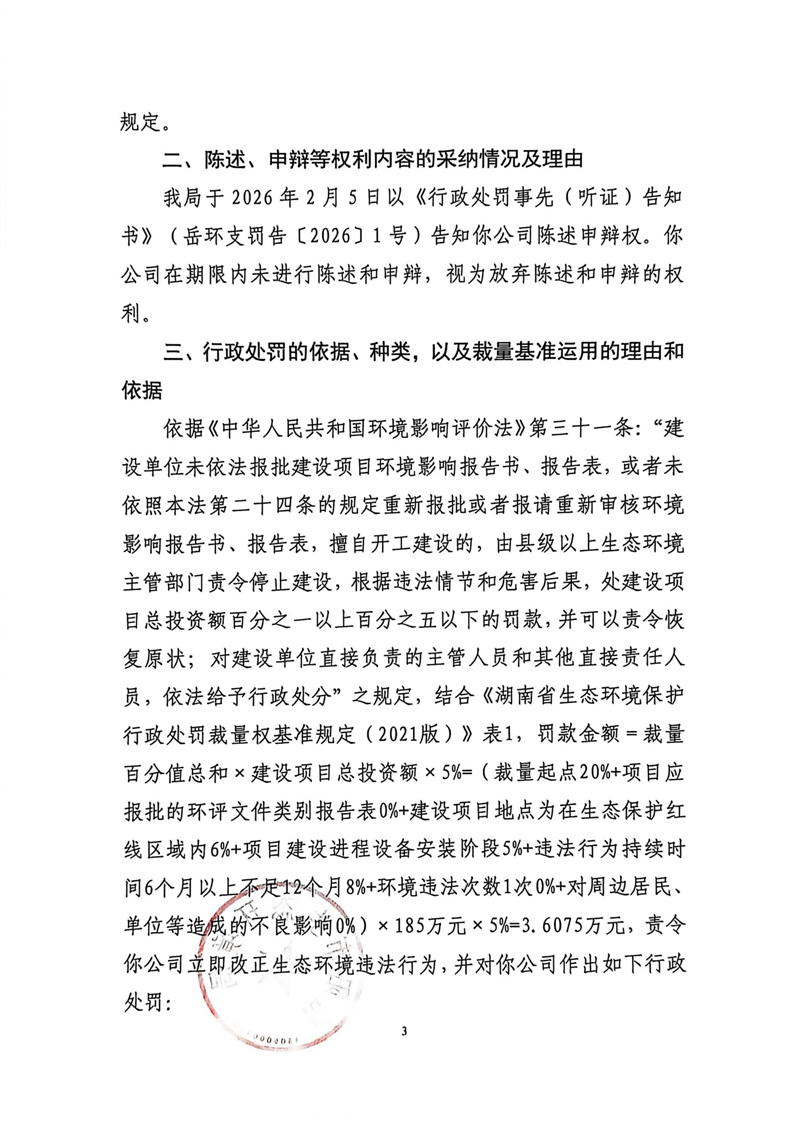 岳环支罚决﹝2026﹞1号