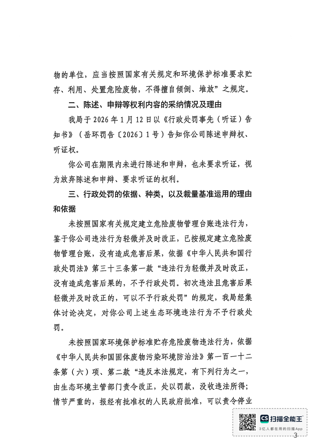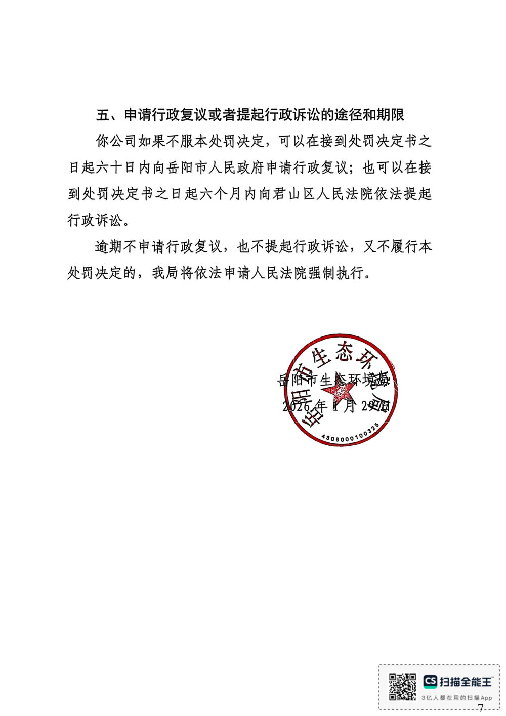 岳环罚决【2026】1号