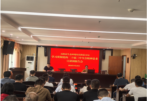9月25日下午,根据县委统一安排部署,学习贯彻党的二十届三中全会精神县委宣讲团报告会在岳阳市生态环境局岳阳县分局举行。岳阳县委理论宣讲团成员、县委党校社会培训科科长朱美玲到会宣讲。报告会由岳阳市生态环境局岳阳县分局党组书记、局长高波主持。