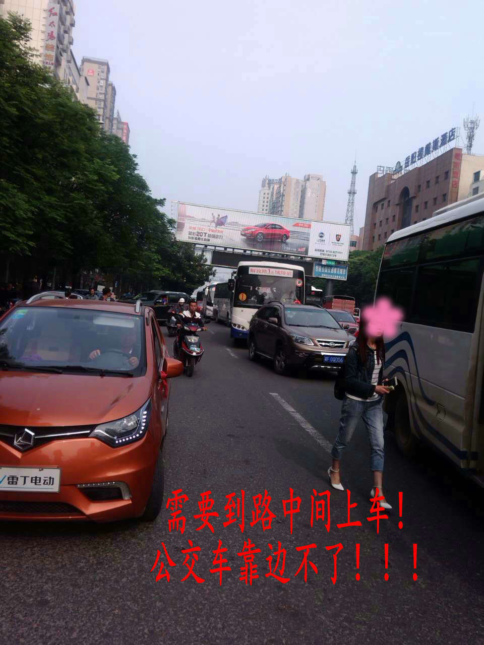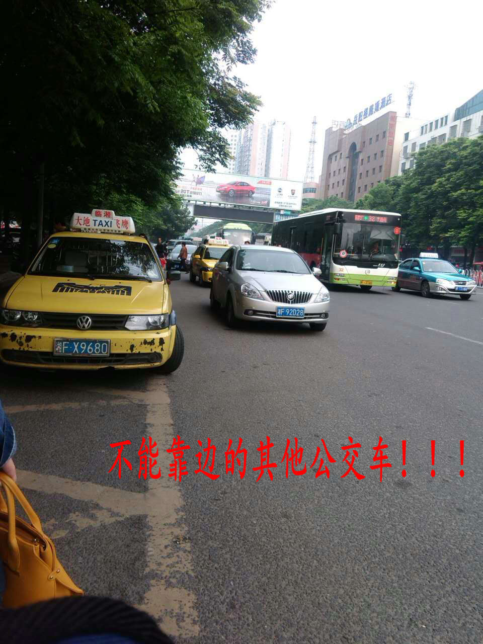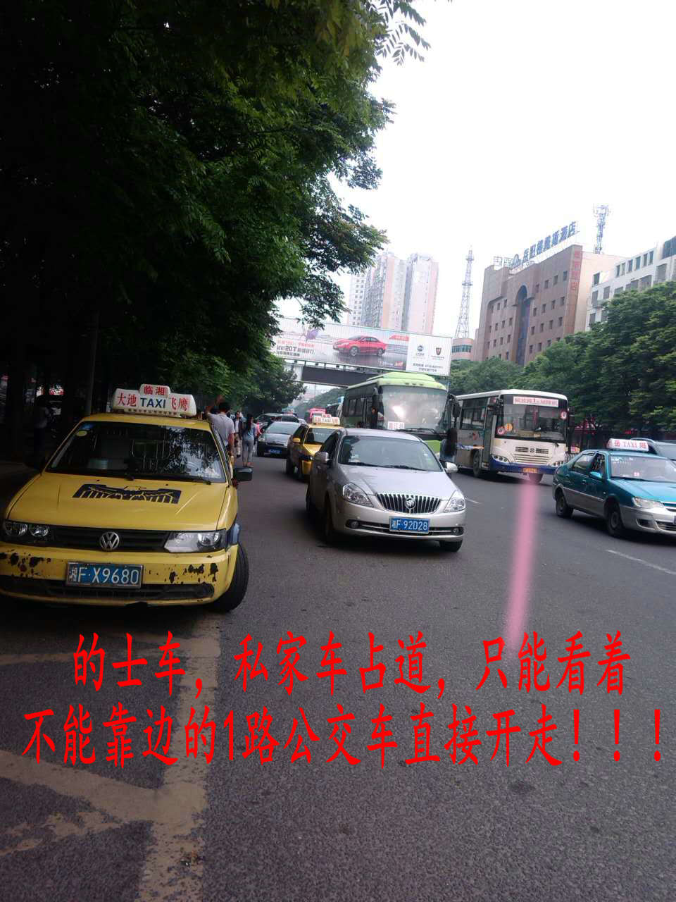 交警不执勤后,交通又是一团糟! 的士车,私家车占道,公交车不能靠边上下客,直接开走。。。 (附上照片)