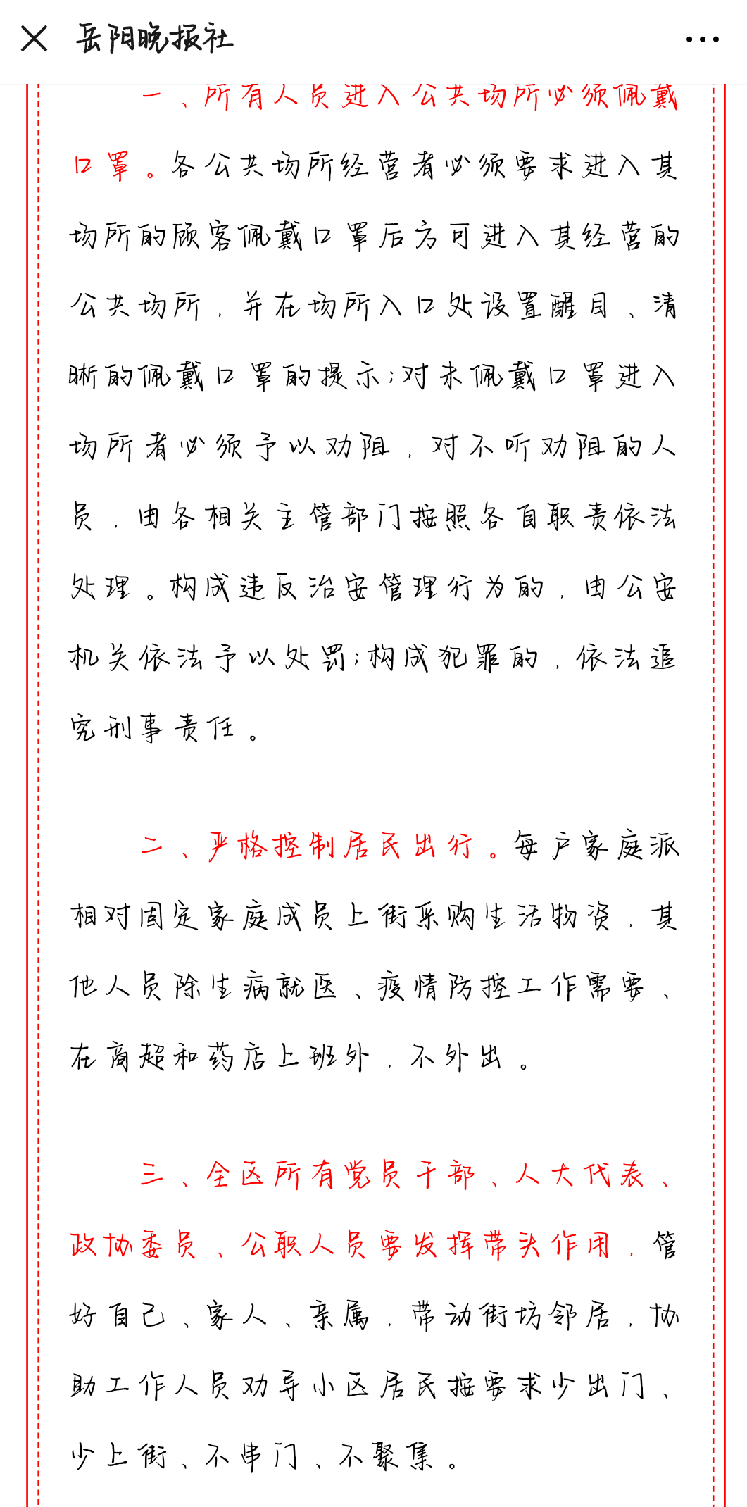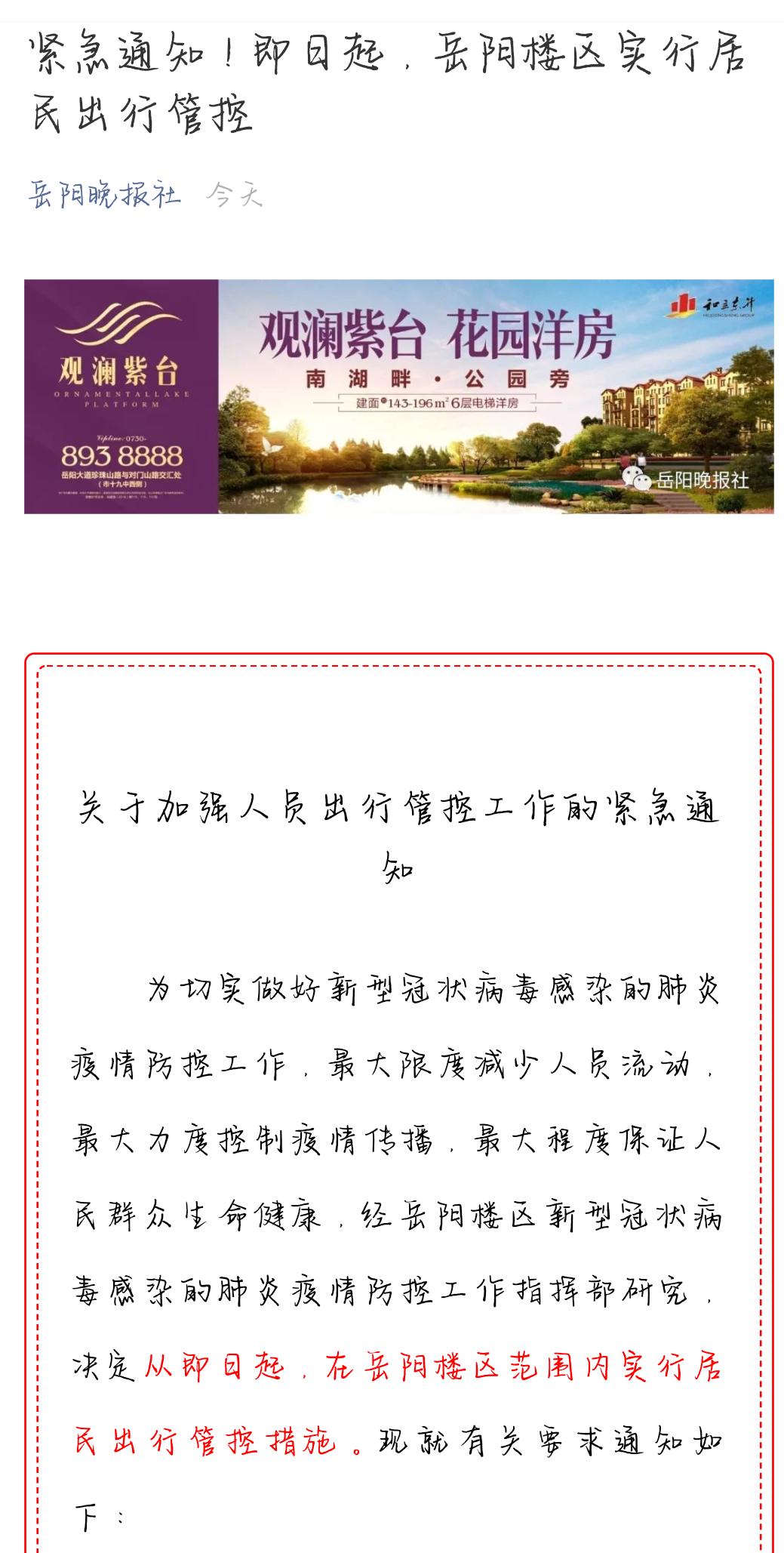 标题: 岳阳楼区关于加强人员出行管控工作的紧急通知