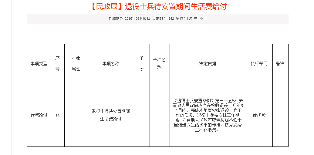 | 标题: | 关于退伍军人待安置期间的生活补助 |